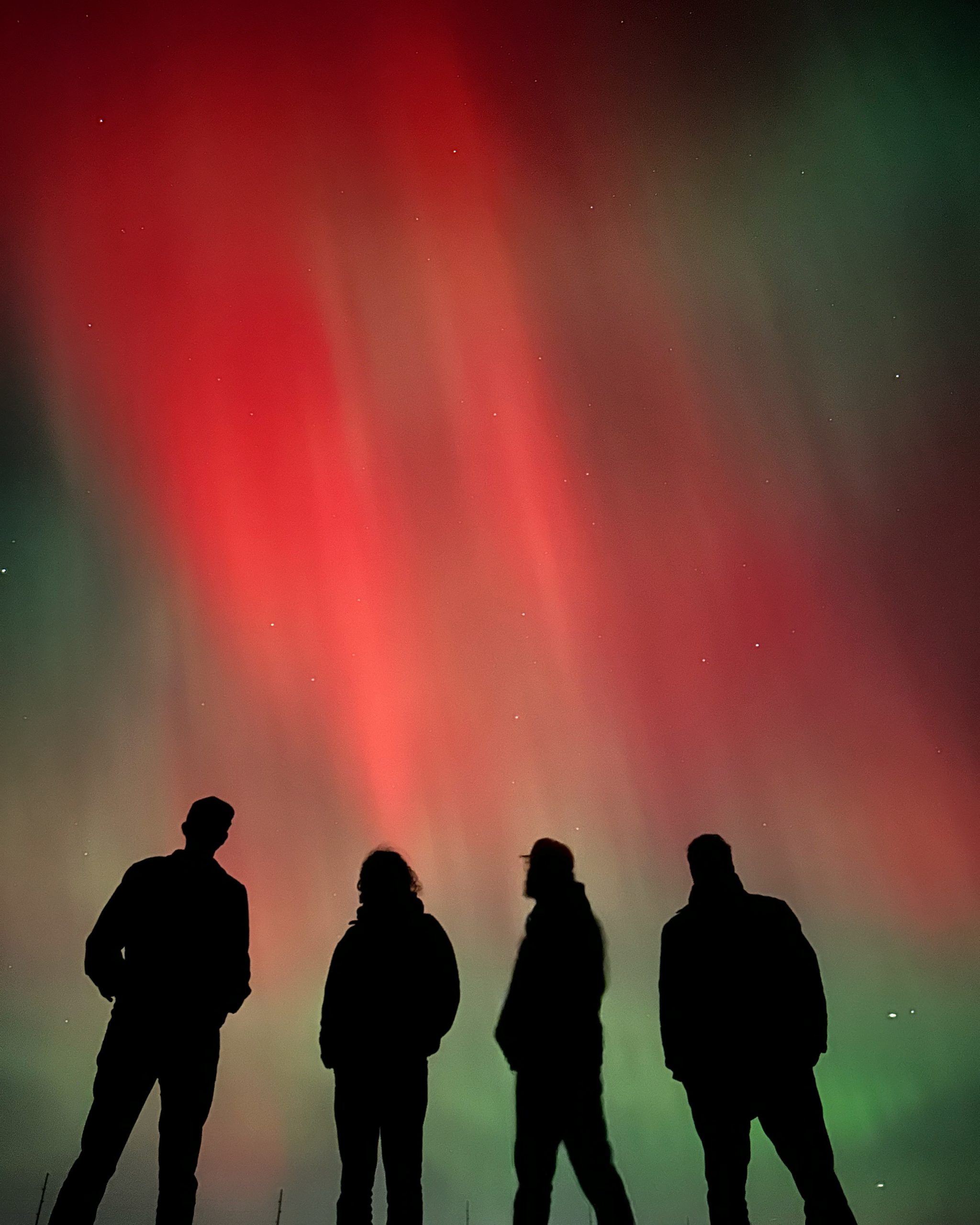 A few members of the band made an expedition from Pachyderm Studios outside Cannon Falls to capture the brilliant Northern Lights while the band was working on their upcoming album. From left: David Robinson, David Gustafson, Jake Johnson, Adam Wirtzfeld. Photo: Brody Kucera.